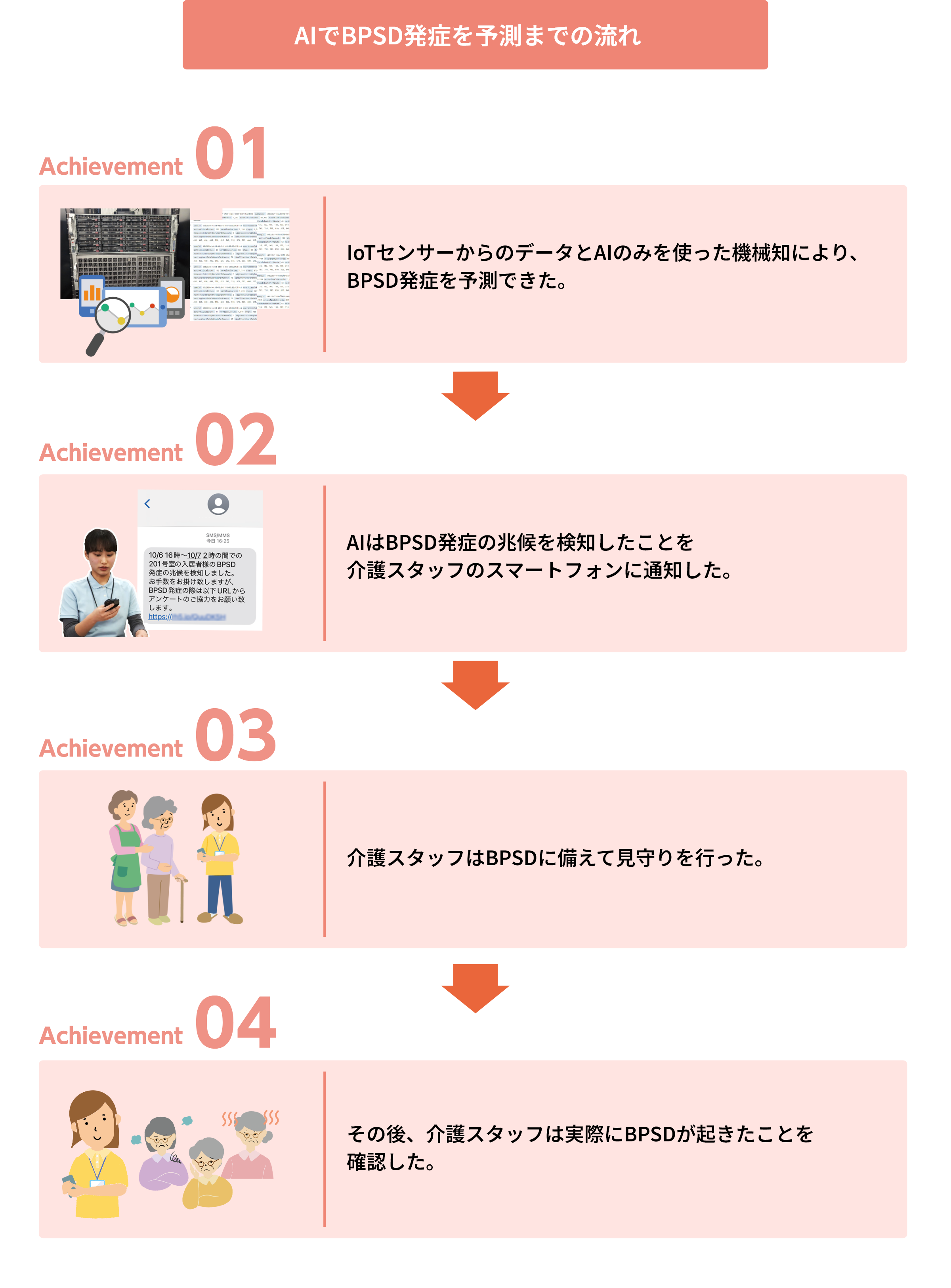 AIでBPSD発症を予測し、介護施設に伝達しました。