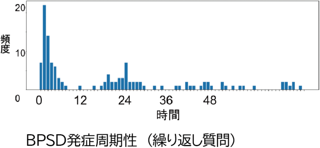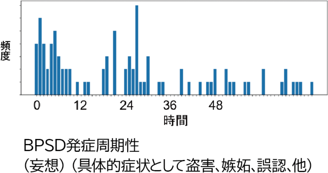 妄想、暴言、繰り返し質問など、BPSDの種類によって周期性が見られることが分かりました。