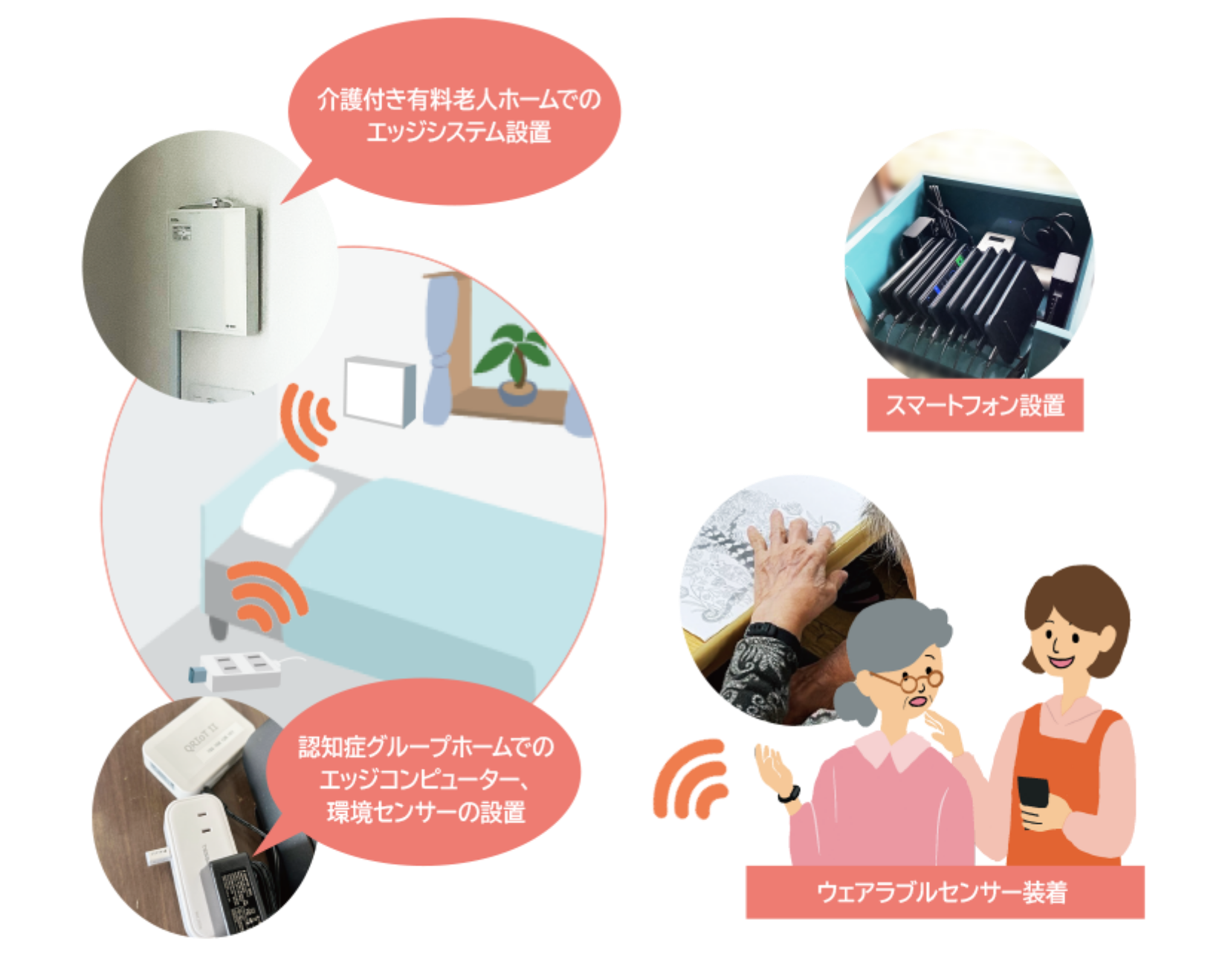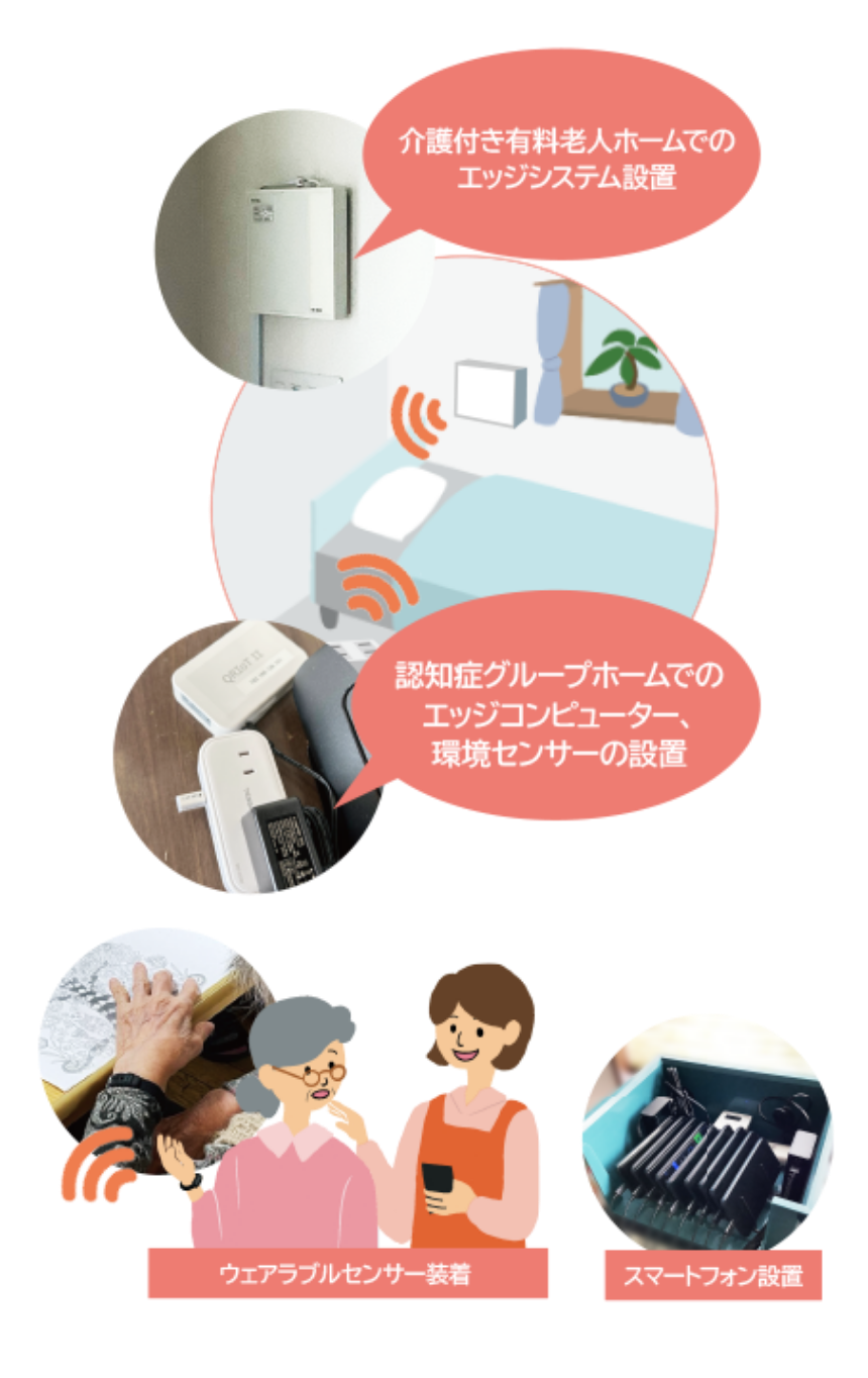 AI/IoTシステムにより認知症の方の状況を知ることが介護の負担を軽減できることを実証するために、デイサービス(ソラスト流山)の利用者様に参加していただきました。介護スタッフとご家族には睡眠状態を見える化しました。ご家族からは状況がわかることは安心感につながるというお言葉をいただきました。