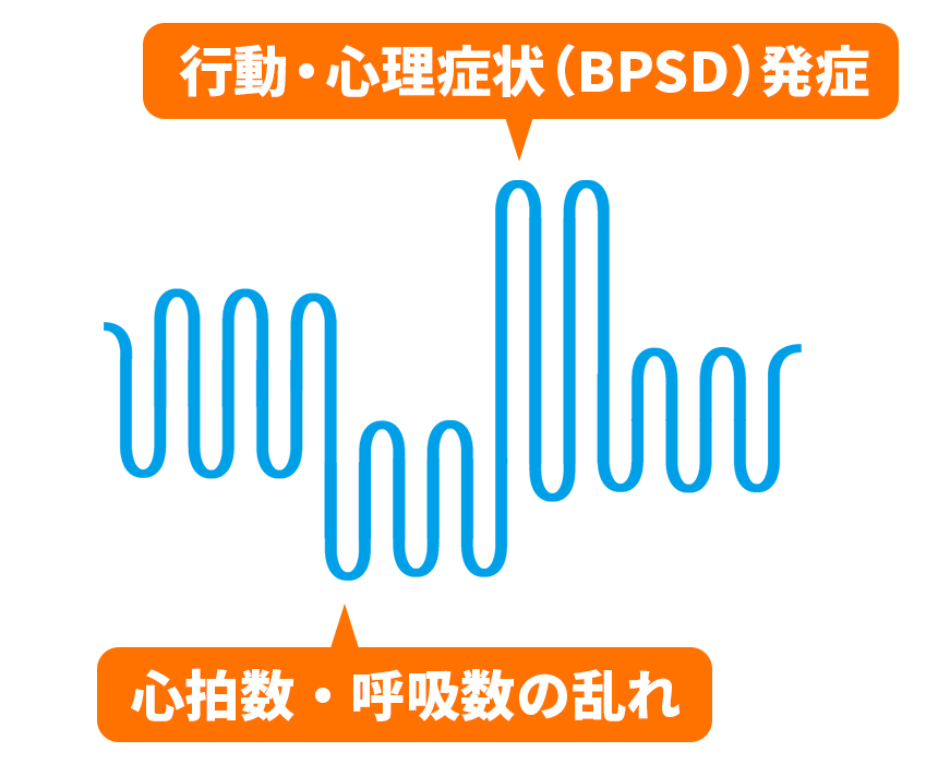 この事業では、BPSDの発症を検知したり予測したりするIoTセンサーやAIの開発を行っています。たとえば、BPSDを発症する時には、心拍数や呼吸数が乱れることが研究からわかっています。
