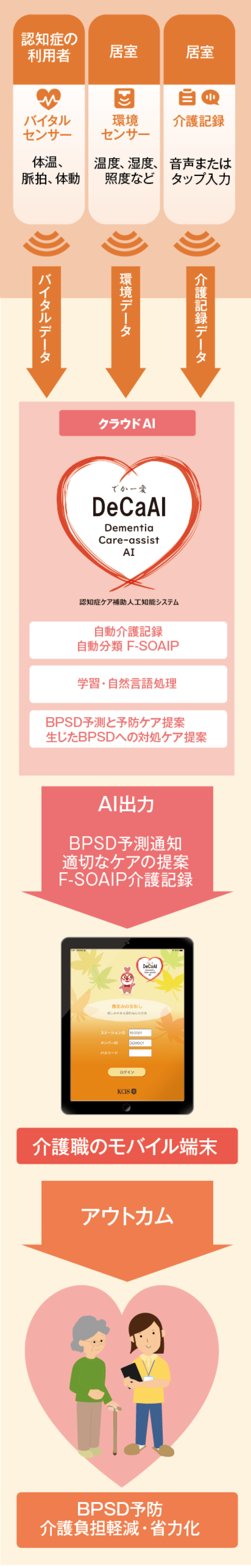 「認知症の本態解明、予防、介護方法」に関するさらなる研究とAI/IoTシステムの精度向上に努め、